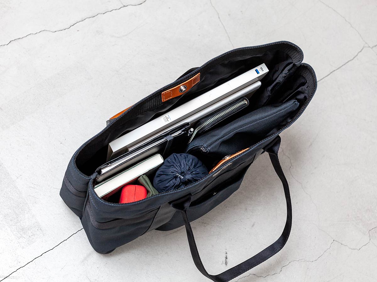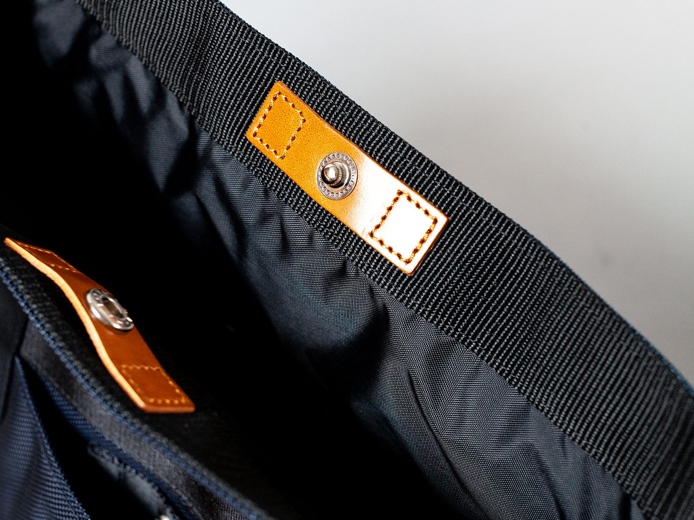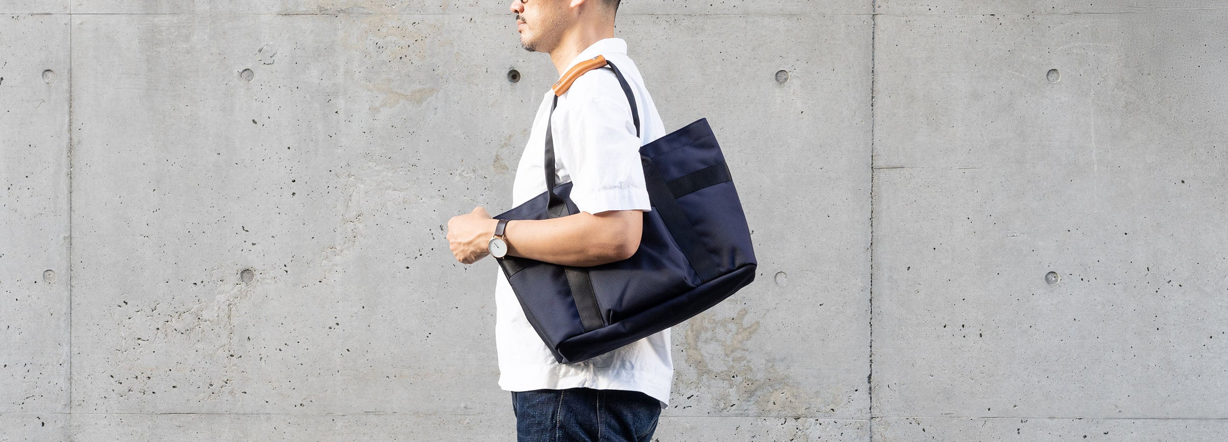 バリスターナイロン素材の頑丈で軽量なシンプルなデザインのトートバッグ。マチに強度の高い芯を這わせ、自立性を確保。アウトドアシーンやカジュアルなシーンで強度が欲しいときにも実用的に、ビジカジ用途にも保形力がスマートに見せてくれます。持ち手には革を用いて、前面には収納力があるマチ付きポケットが1つ、内装にもポケットを2つ設置。