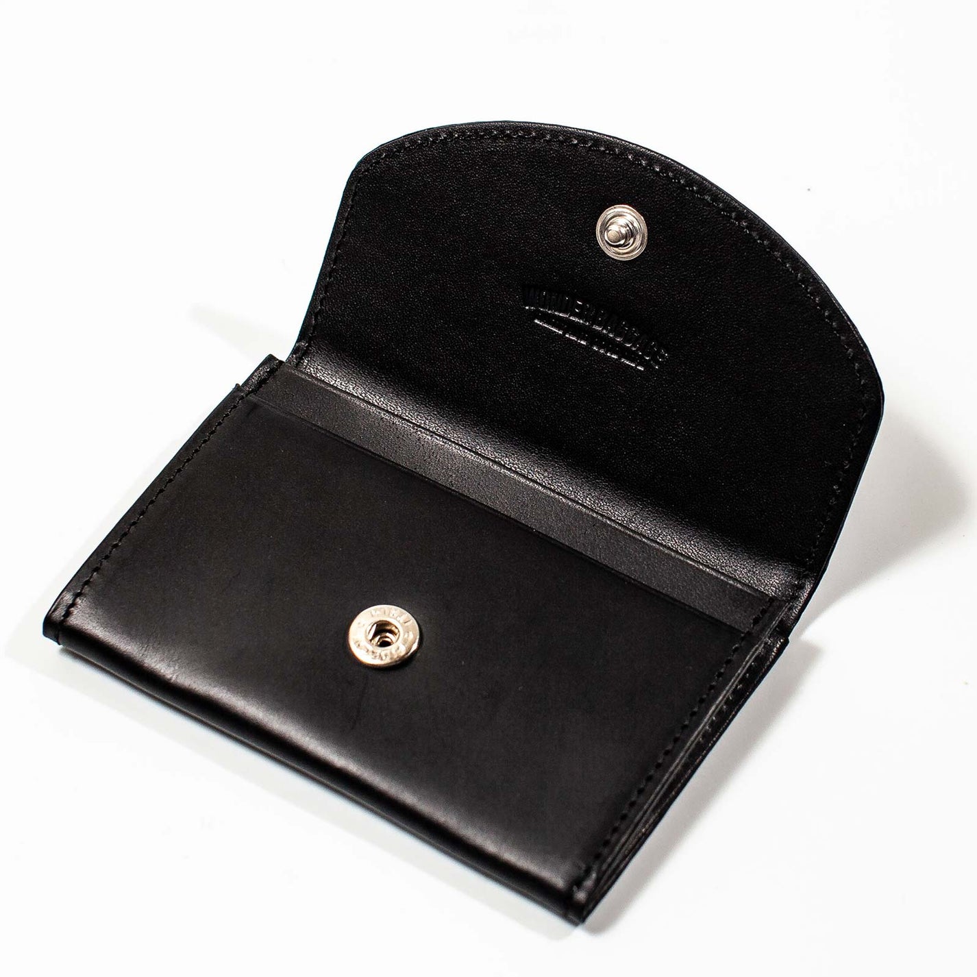 ラウンドしたフラップが目を引く名刺入れは、「ササマチ」と呼ばれる先につれて細くなる構造のマチを採用。
