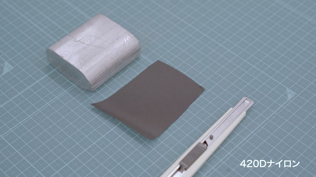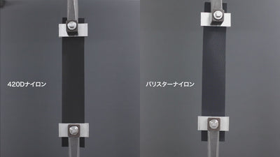 前述の数値は、公的な検査期間における検証です。改めて、その強靭さを理解するために、簡易的ではありますが、WONDER BAGGAGEが独自に、420Dナイロンとの比較をおこないました。