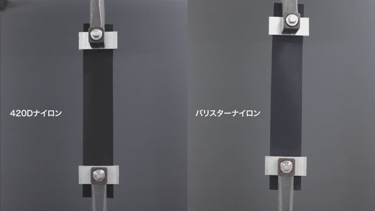 バリスティックナイロンと呼ばれるものはおよそ1680~2100D。通常と比べて4~5倍。それらの数値を超えたバリスターナイロンは国内だけでなく、世界的に見ても非常に高い強度をもった素材だということがわかります。