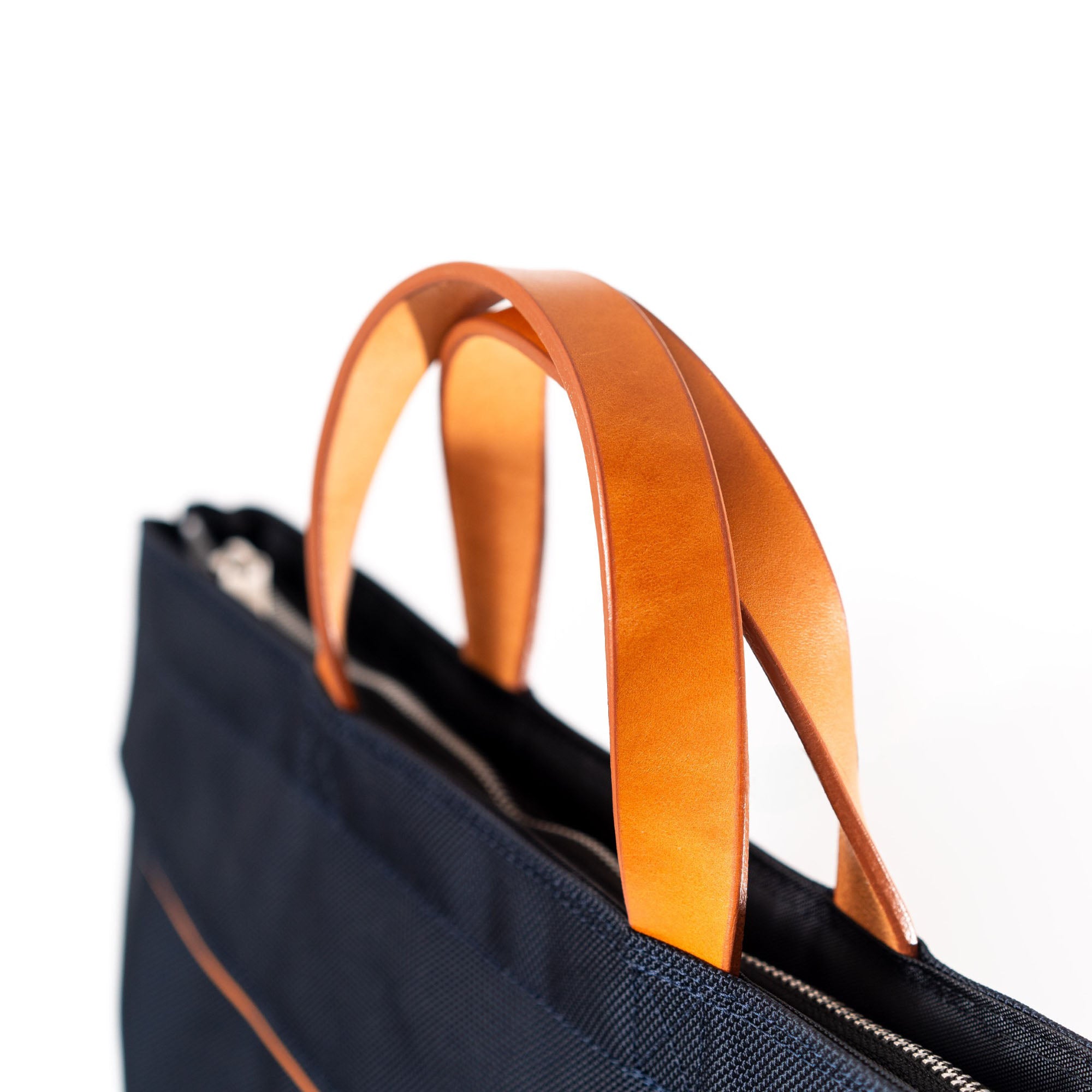 さらに本体材はバリスティックの高強度に加えて防水ときている。だけどハンドルはタンニンレザーってのも粋な印象を受けた。