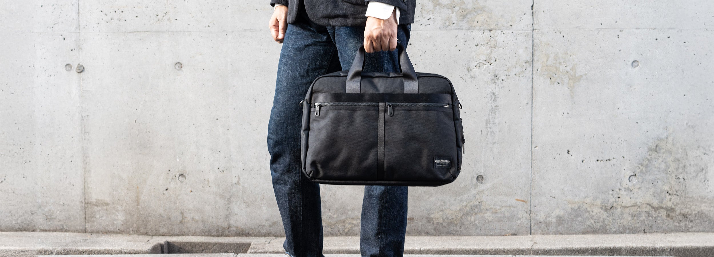 ブリーフケースのシルエットながら、マチサイズが13cmと大きく設計。マジソンバッグのような立たずまいをしており、カジュアル目のスタイリングにも違和感なく使用可能。