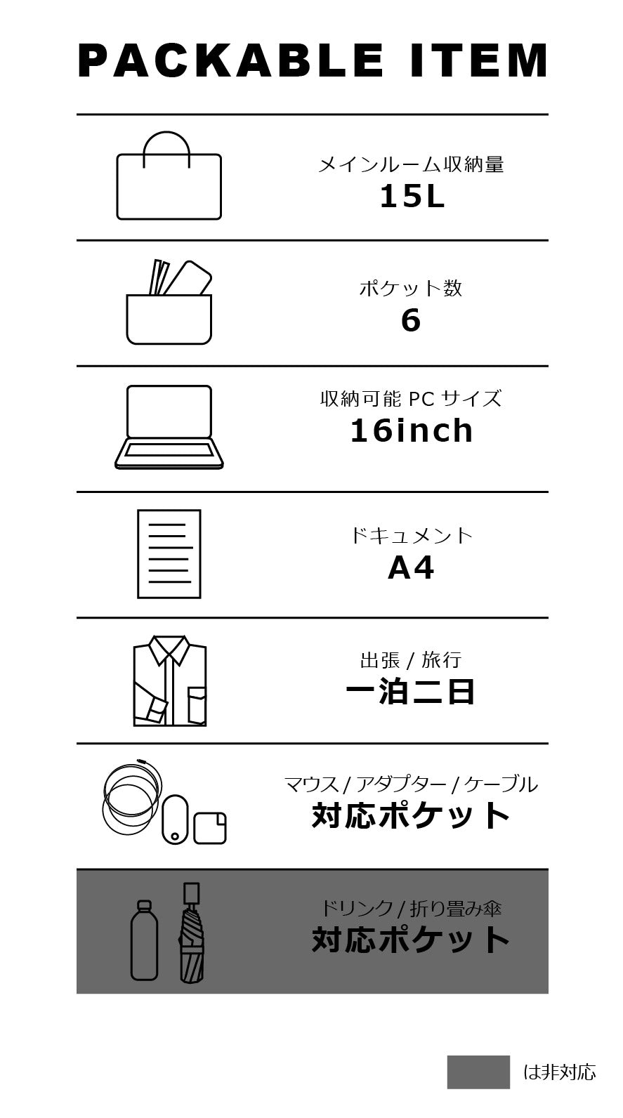 サブポケットは内側に膨らみ、シューズなど嵩張るものを入れても見た目に影響しません。