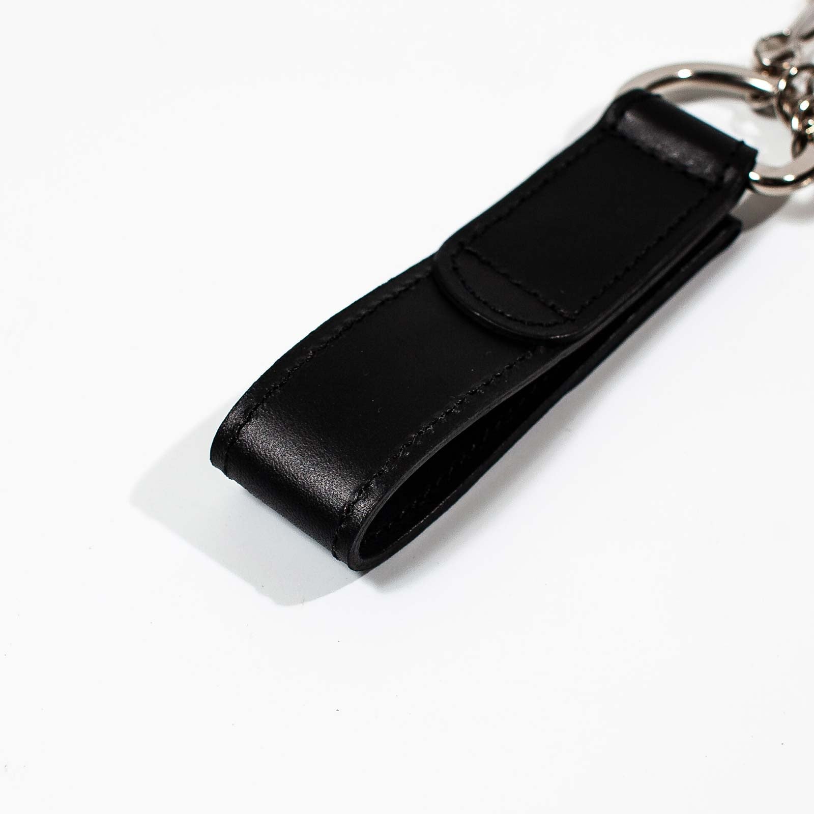 贅沢にブッテーロレザーを裏表に2枚使い、ループ仕様に。ホックの付け外しでベルトやバッグなどへの装着が可能になっている。