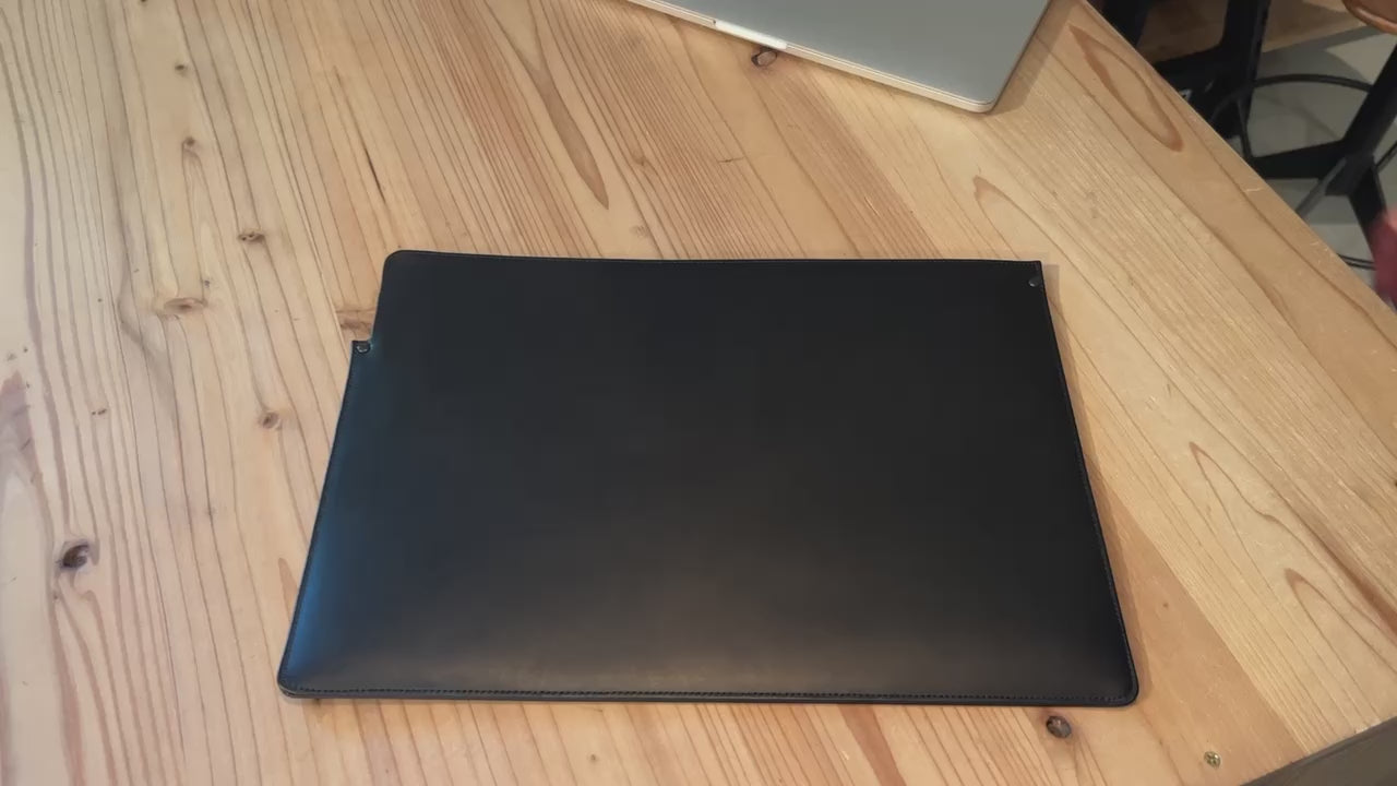 14inch Macbookまでを想定した、ブッテーロレザーをふんだんに使用したPCスリーブ。片側に空いたスリットから、スリーブに入れたまま電源の充電が可能。