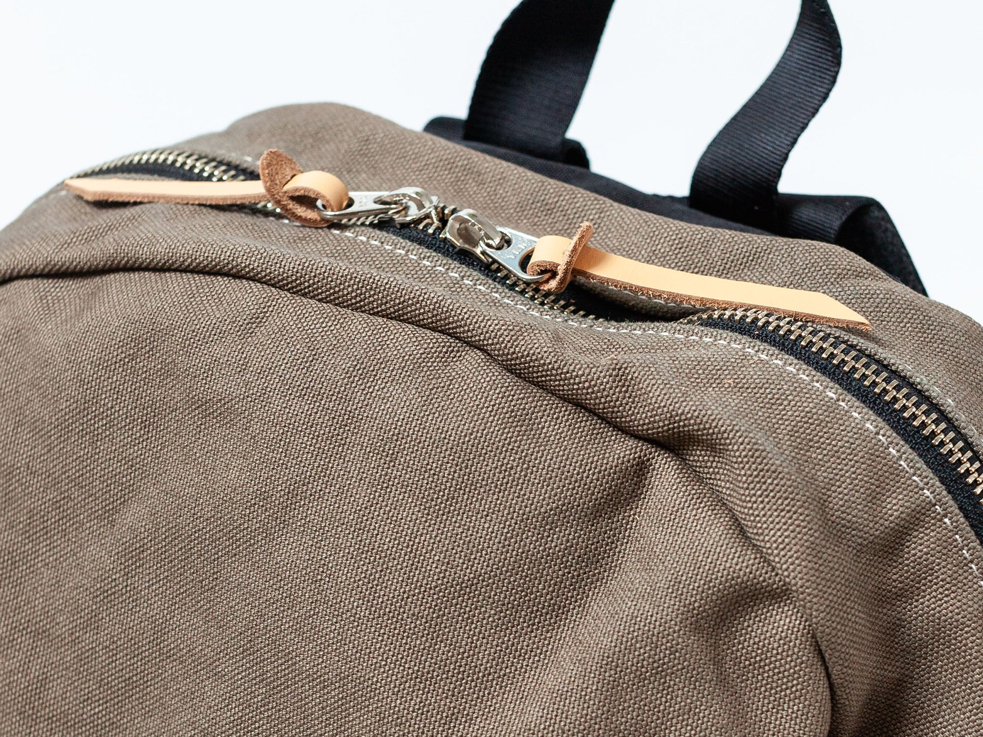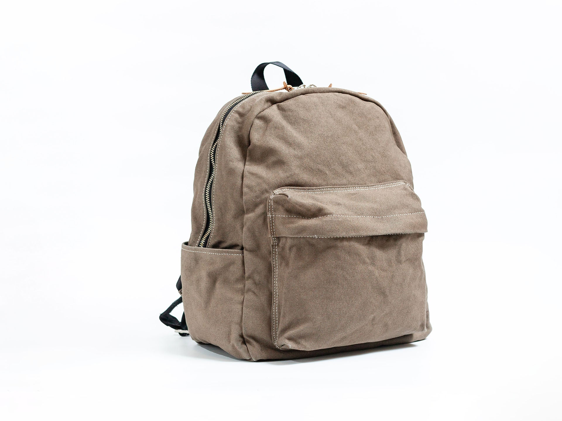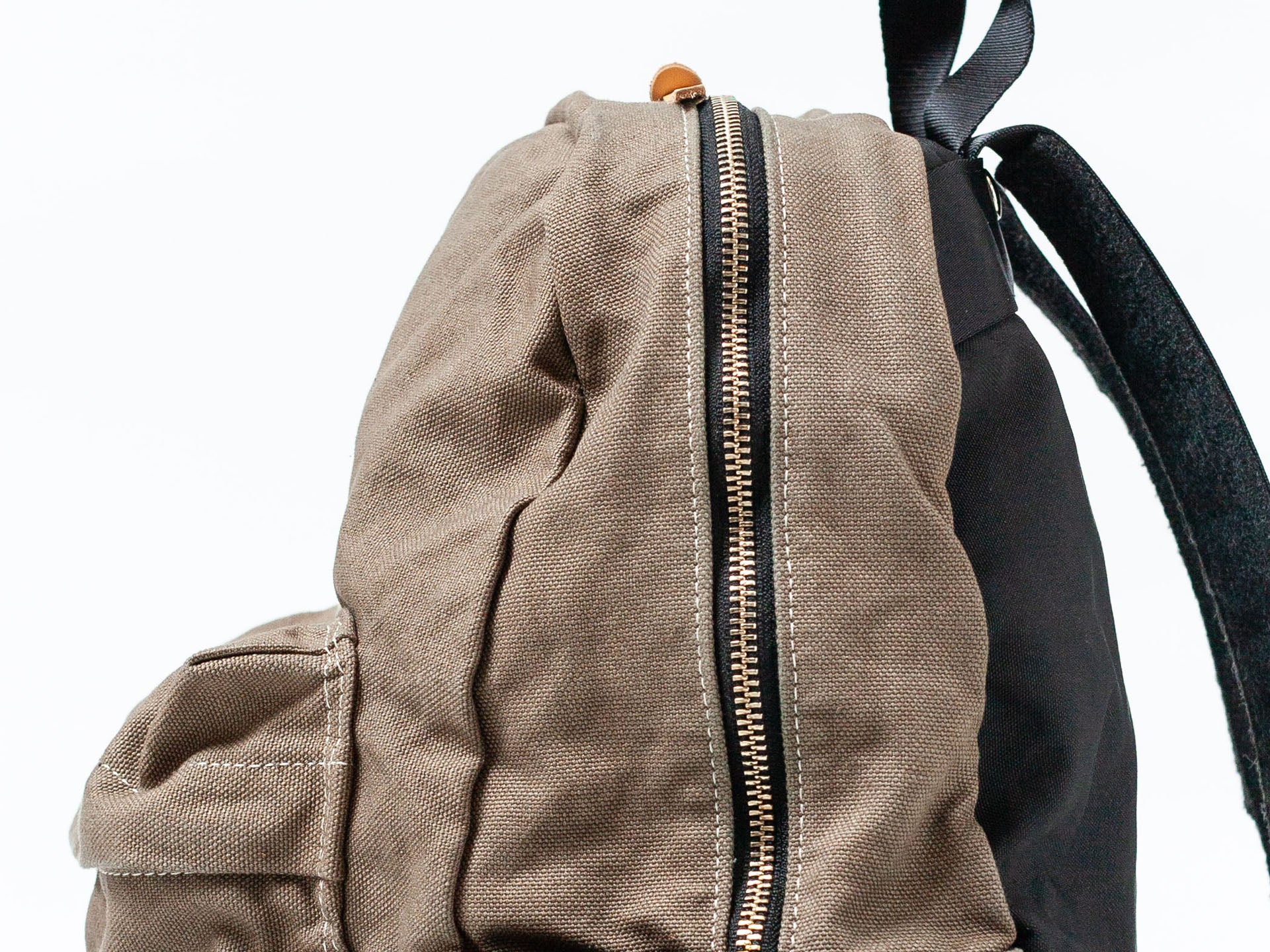 長年スクールバッグを作り続けていた工場の型紙を使いリデザインされた使い勝手よいリュック。しっかりとしたコシのある8号帆布をベースにメタルファスナー、革の引手、テープ材、フェルトのクッションなどディティールにこだわり抜いた設計となっている。