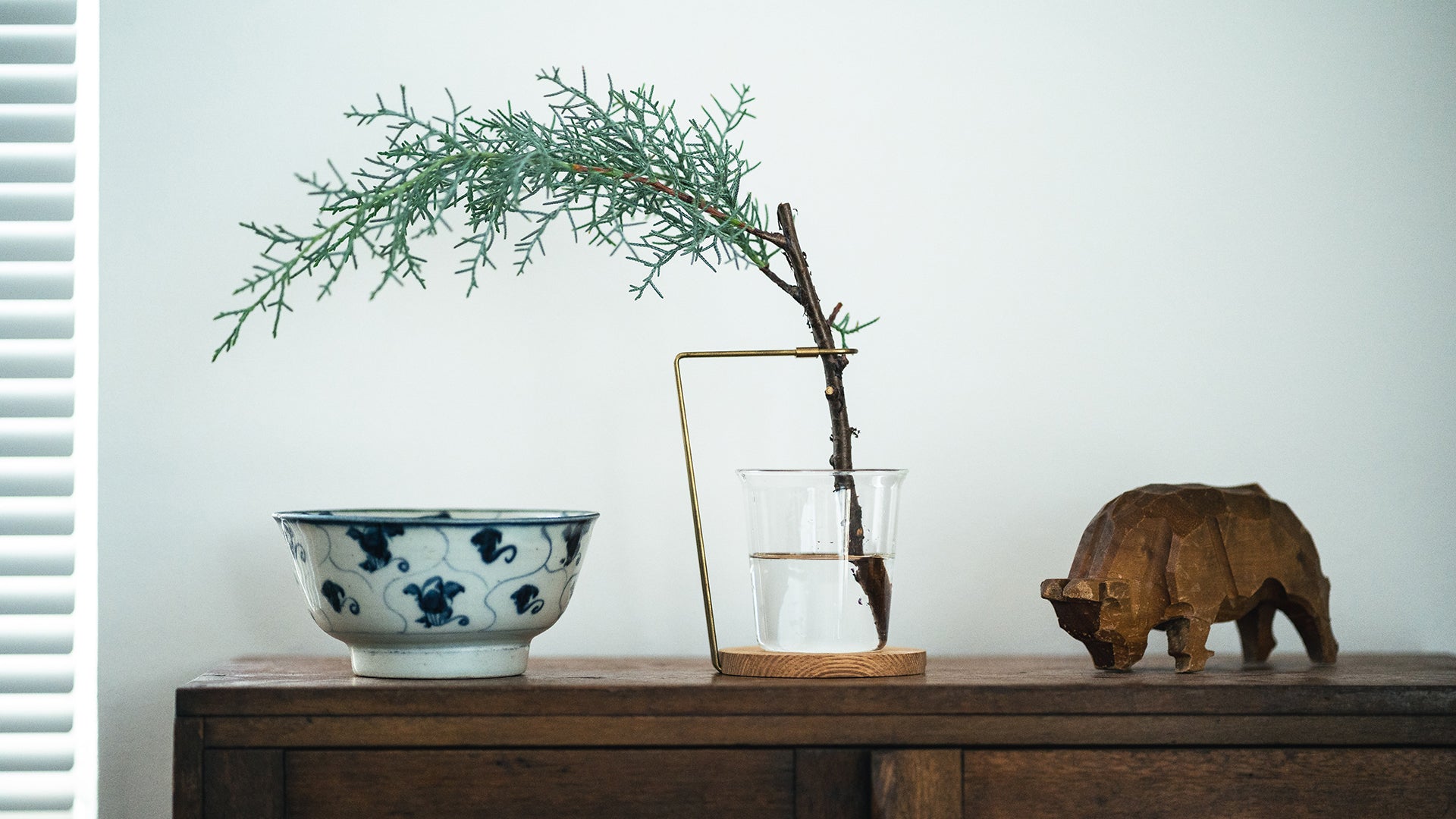 「浅い器に長ーい枝を活けると、この製品の良さが引き立ち、独特の世界観になるような気がします。」