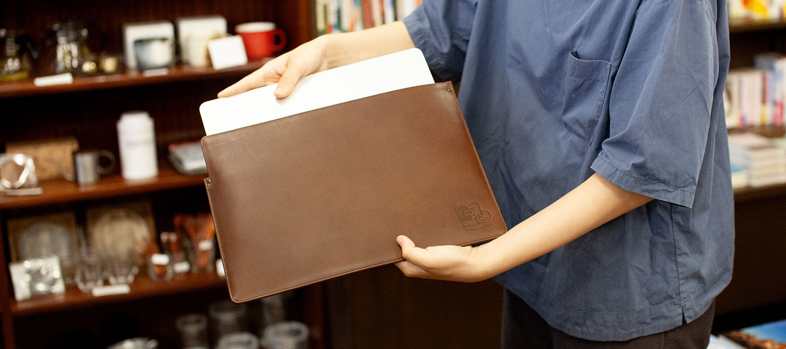名書店「恵文社」とのコラボレーションモデル。最高品質レザー使用のPCスリーブ。
