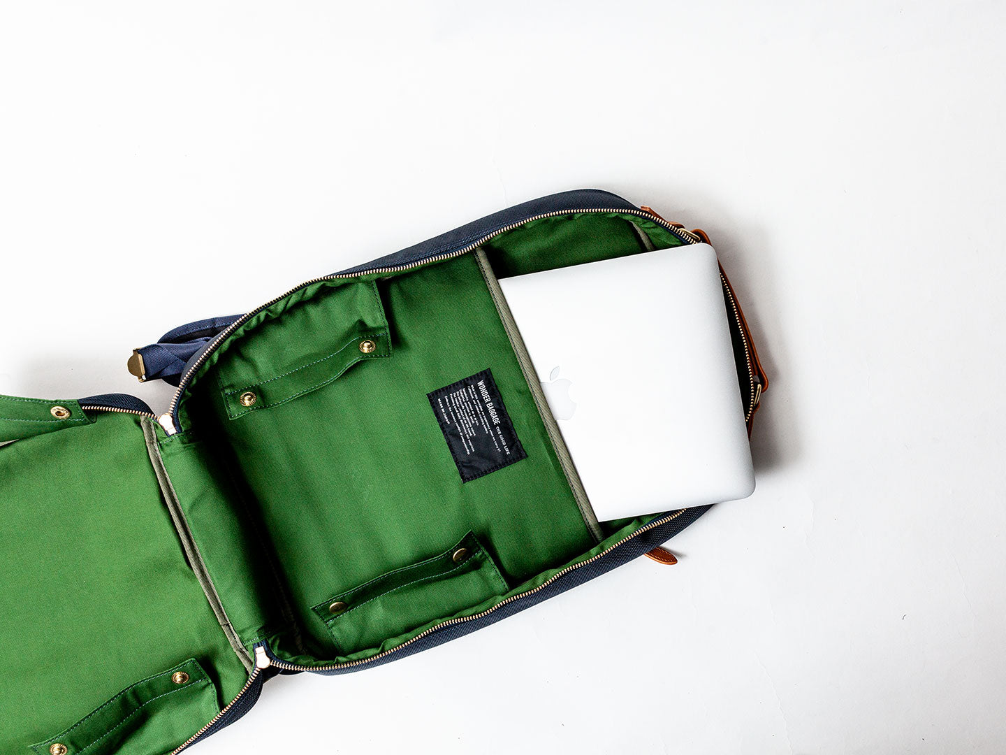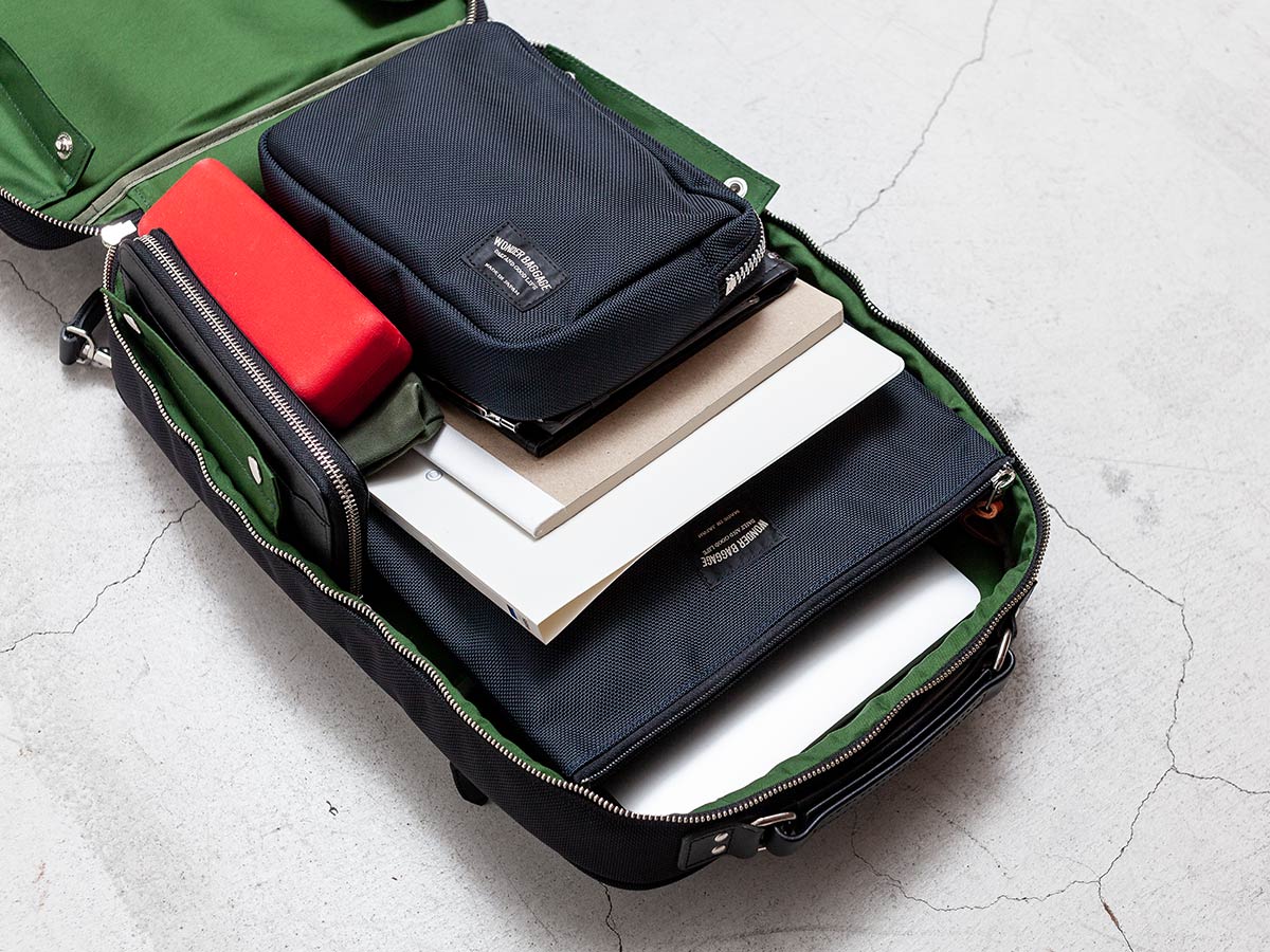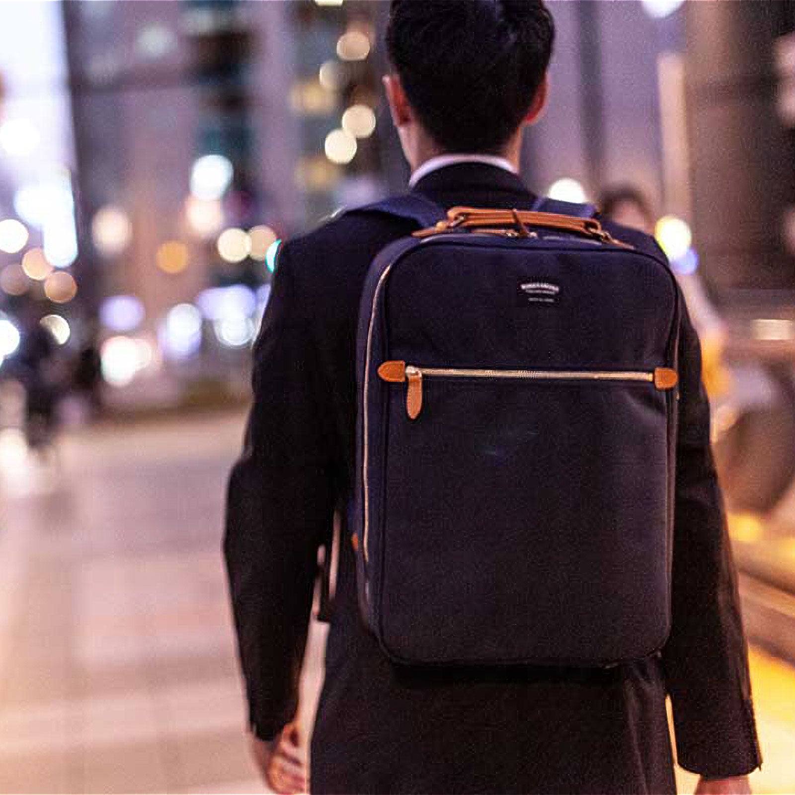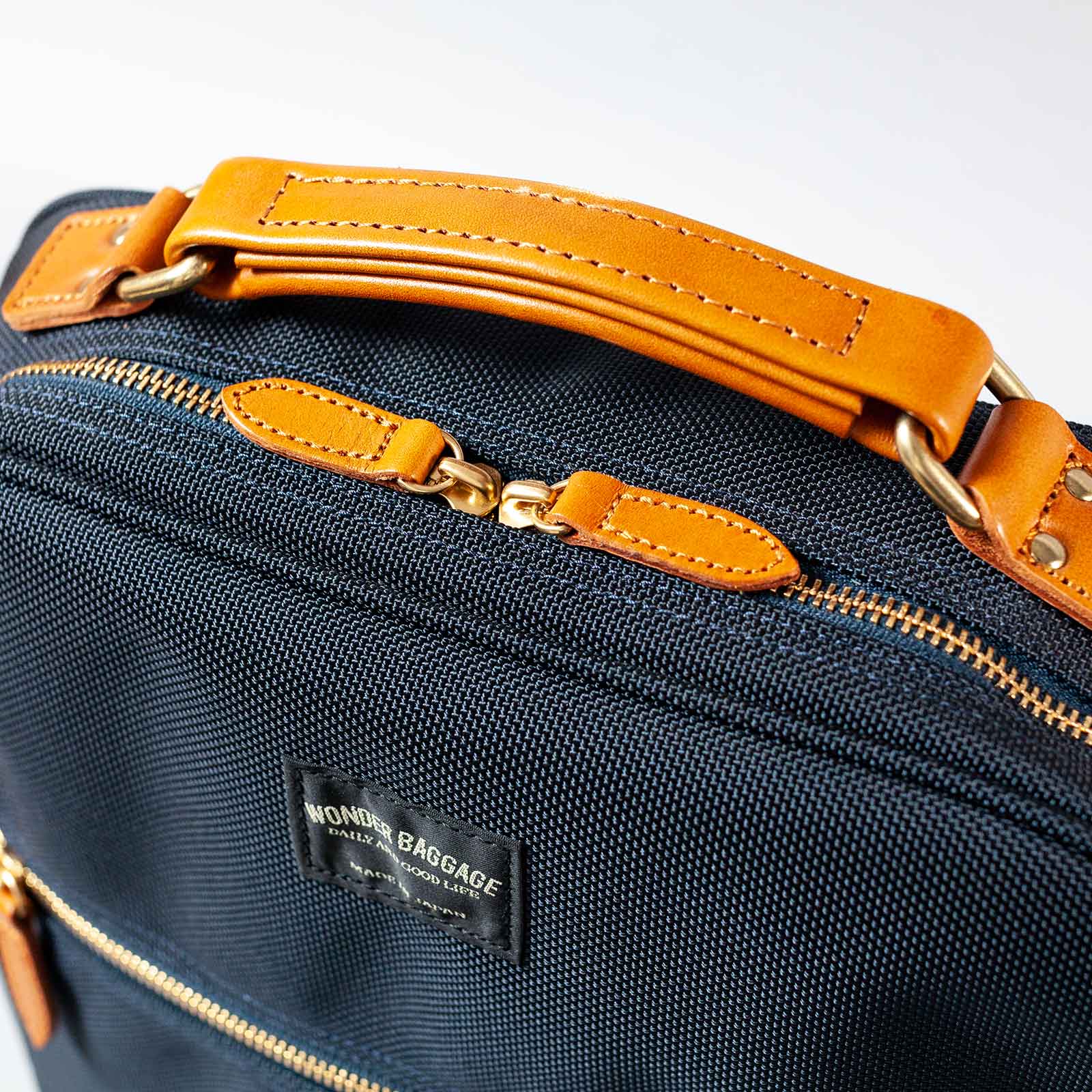 全体に這わされた玉芯、作れる工場の限られる存在感のあるハンドル部分など、アイコニックでありながらも高級感がありスマートな印象のWONDER BAGGAGEのビジネスリュック。