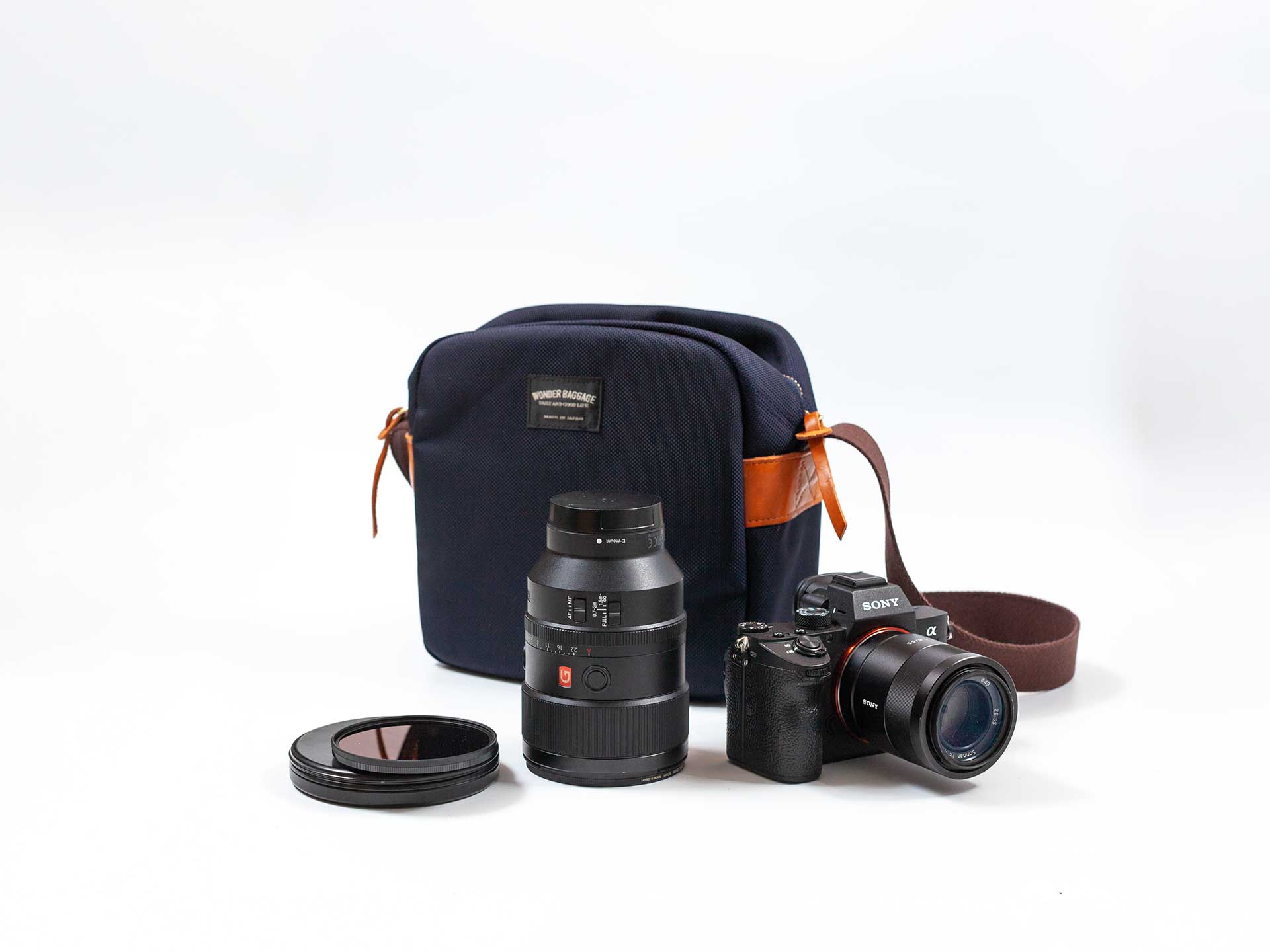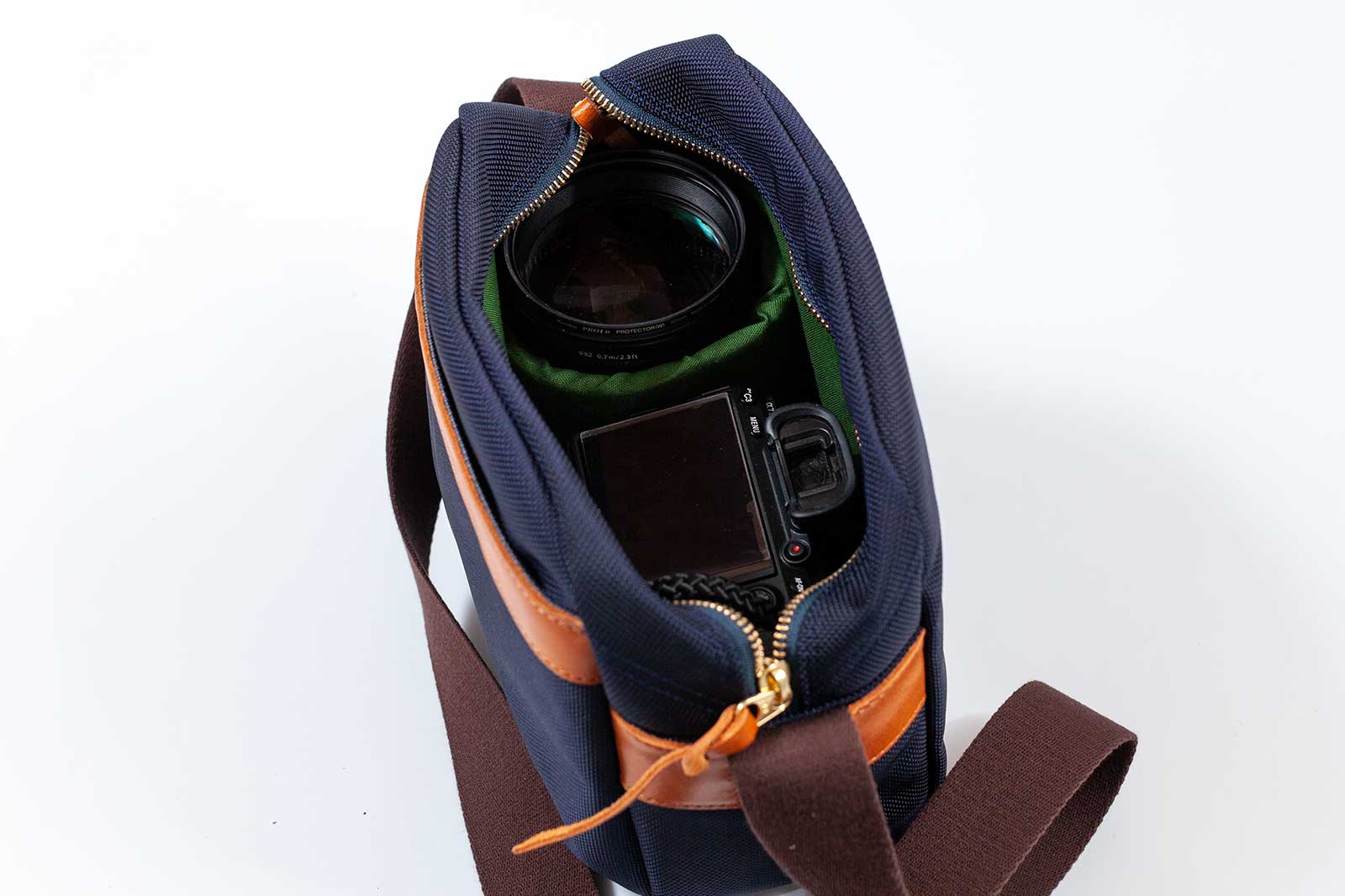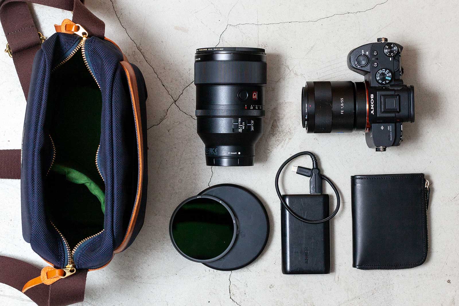 収納するのは手持ちのミラーレス一眼とお気に入りの替えのレンズ一本。それと手持ちの貴重品。そんな所持に最適なバッグ。