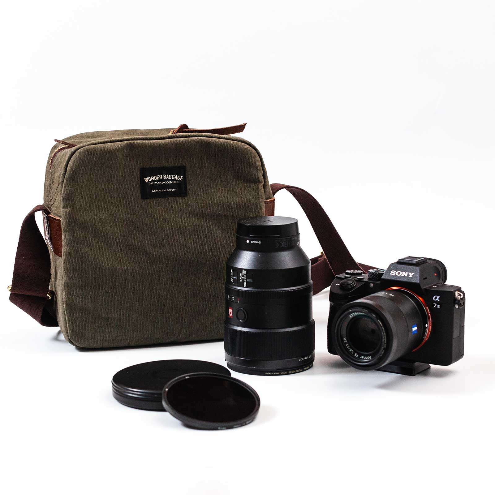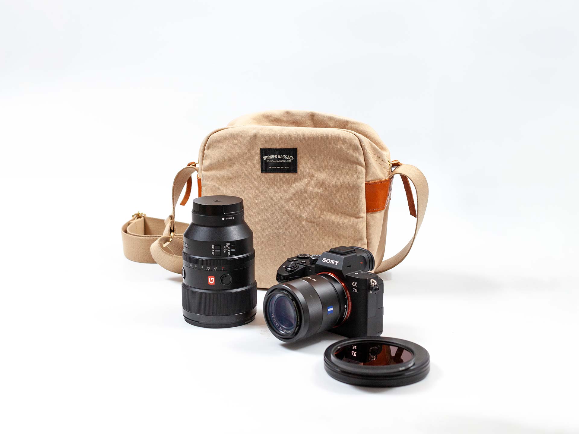 収納するのは手持ちのミラーレス一眼とお気に入りの替えのレンズ一本。それと手持ちの貴重品。そんな所持に最適なバッグ。