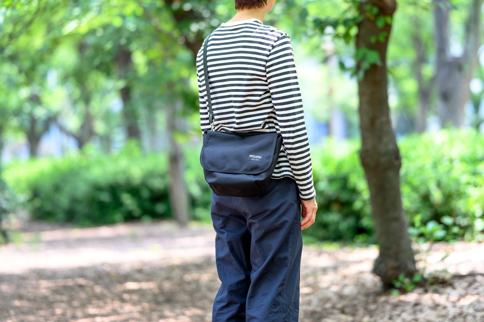 クラシックな雰囲気のショルダーバッグ。ベーシックなメッセンジャーバッグのパターンをベースに、レザーベルトを組み合わせることでありそうでなかったプロダクトへ昇華。それでいて普遍的な使い勝手と佇まいを備えている。